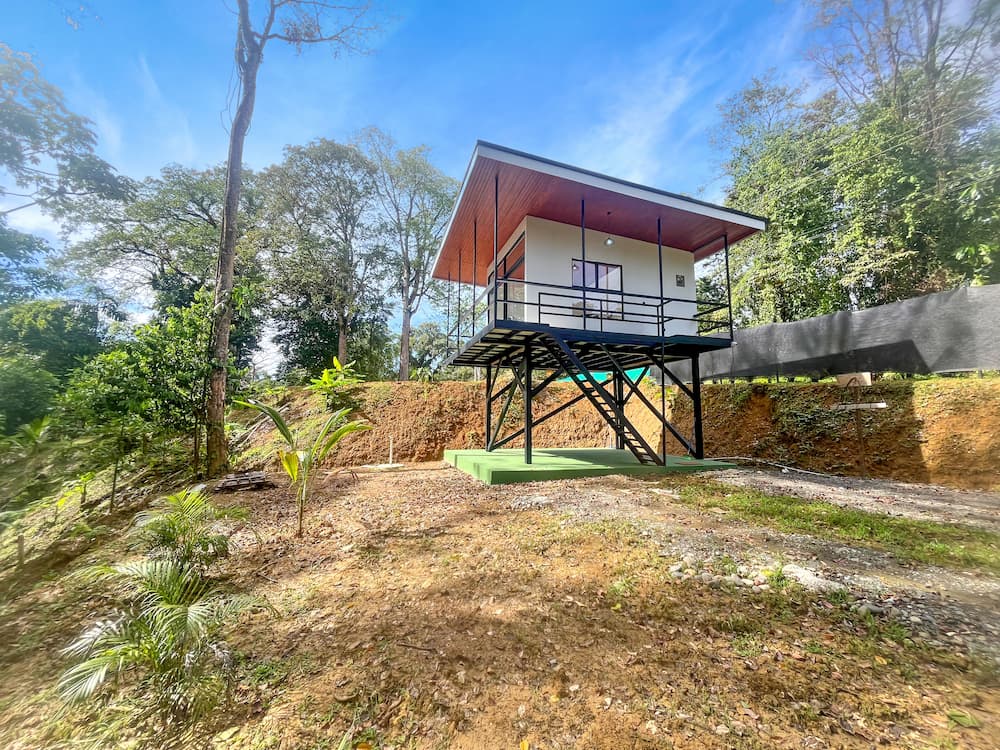 The cozy studio comes partially furnished and is equipped with A/C and its own private well. Nature is truly the main attraction here; the property is a frequent stop for Great Green Macaws and a variety of local wildlife. Located just a 15-minute trip from the world-famous white sands of Punta Uva beach, it offers the perfect balance of roadside convenience and deep jungle tranquility.